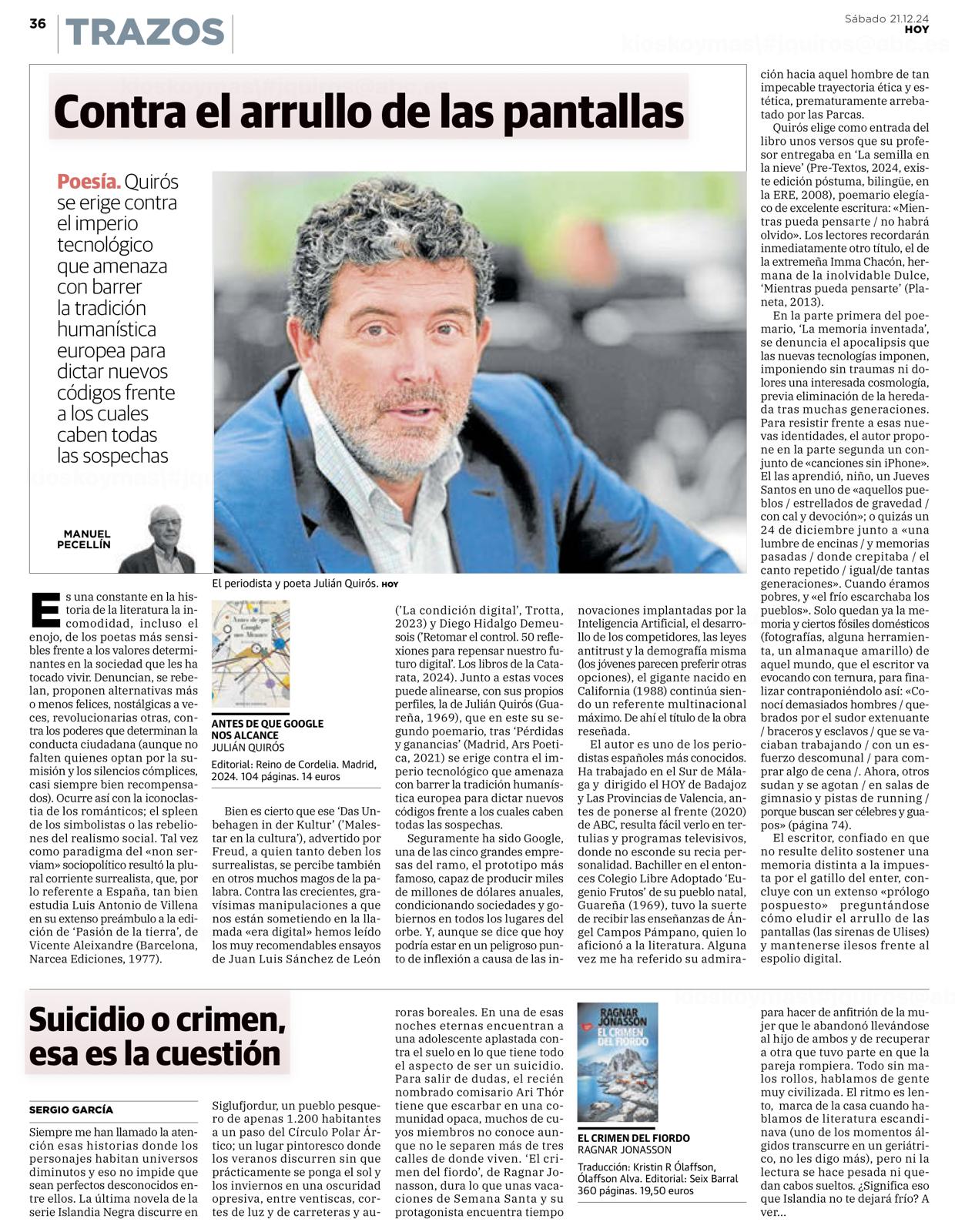 (Guareña, Badajoz, 1969) Es periodista con más de treinta años de trayectoria informativa repartida entre cuatro periódicos de distintas ciudades y diversas colaboraciones en radio y televisión. Desde 2020 dirige del diario ABC. Antes fue director de los periódicos Las Provincias de Valencia y Hoy de Extremadura y previamente subdirector de Sur de Málaga. A lo largo de su carrera ha obtenido reconocimientos como el Premio Einsenhower Fellowships First Amendment por la defensa de la libertad de expresión, la Medalla de Honor de la Asociación de la Prensa de Málaga y el Premio a la ‘Trayectoria Profesional’ de la Comunidad Valenciana). Antes de que Google nos alcance es su segundo poemario, después de Pérdidas y ganancias (2021).